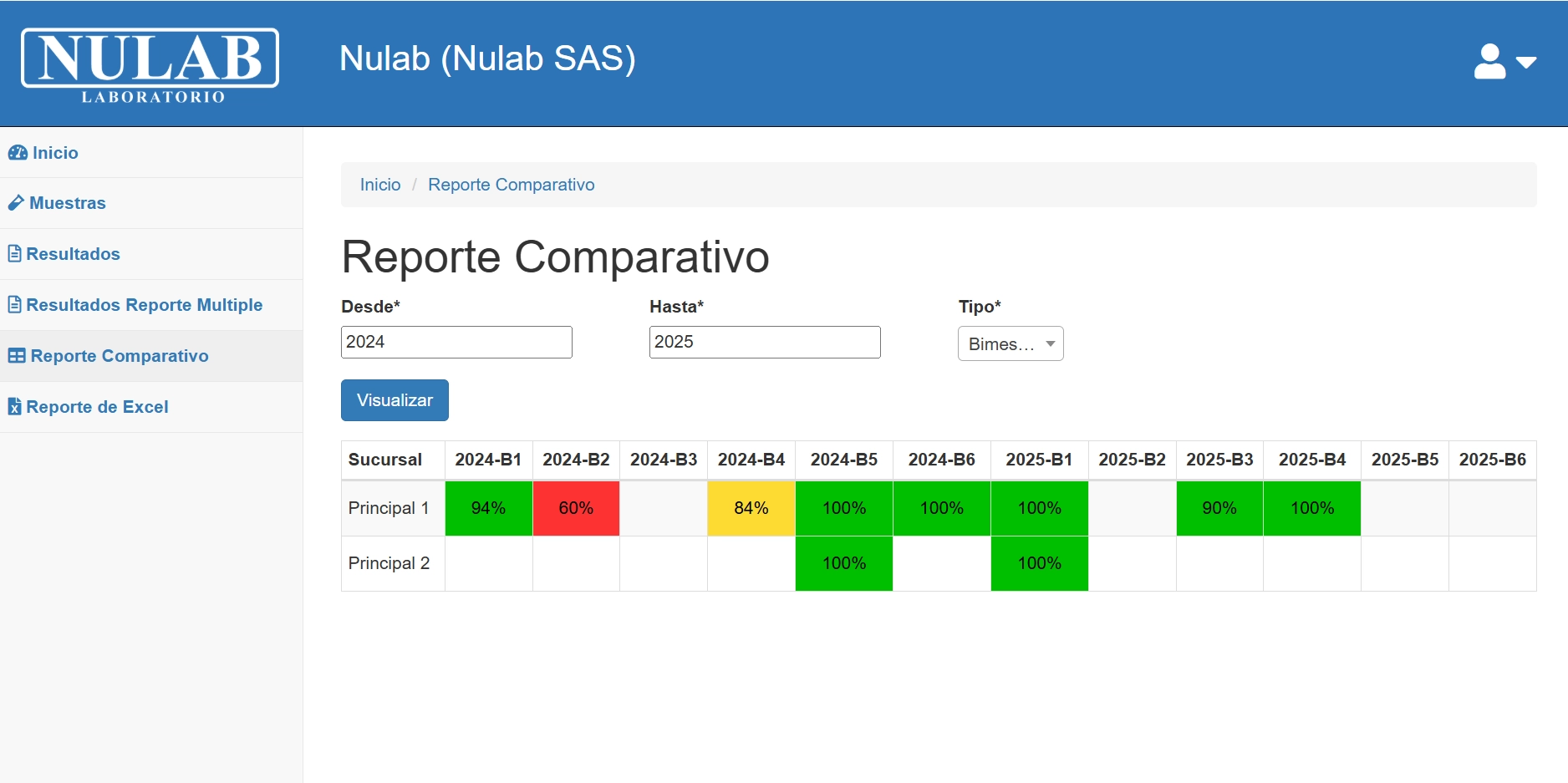 En nuestro portal de internet www.nulab.com.co; ÁREA DE CLIENTES podrá tener acceso en tiempo real a sus resultados; Además allí proveemos una serie de herramientas para facilitar la visualización de sus análisis; optimizar la comunicación y obtener resultados históricos como; estadísticas basadas en muestreos e inspecciones de sus datos dependiendo del período seleccionado.
